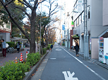 道路右側の3軒目に、パークウィンビルのエントランスが見えます。